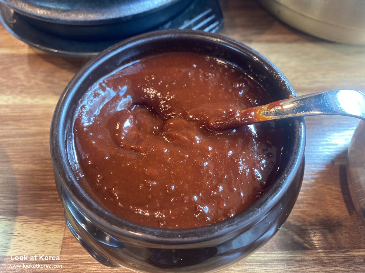 Sometimes, depending on the restaurant, the sauce is served on top of yukhoe bibimbap.